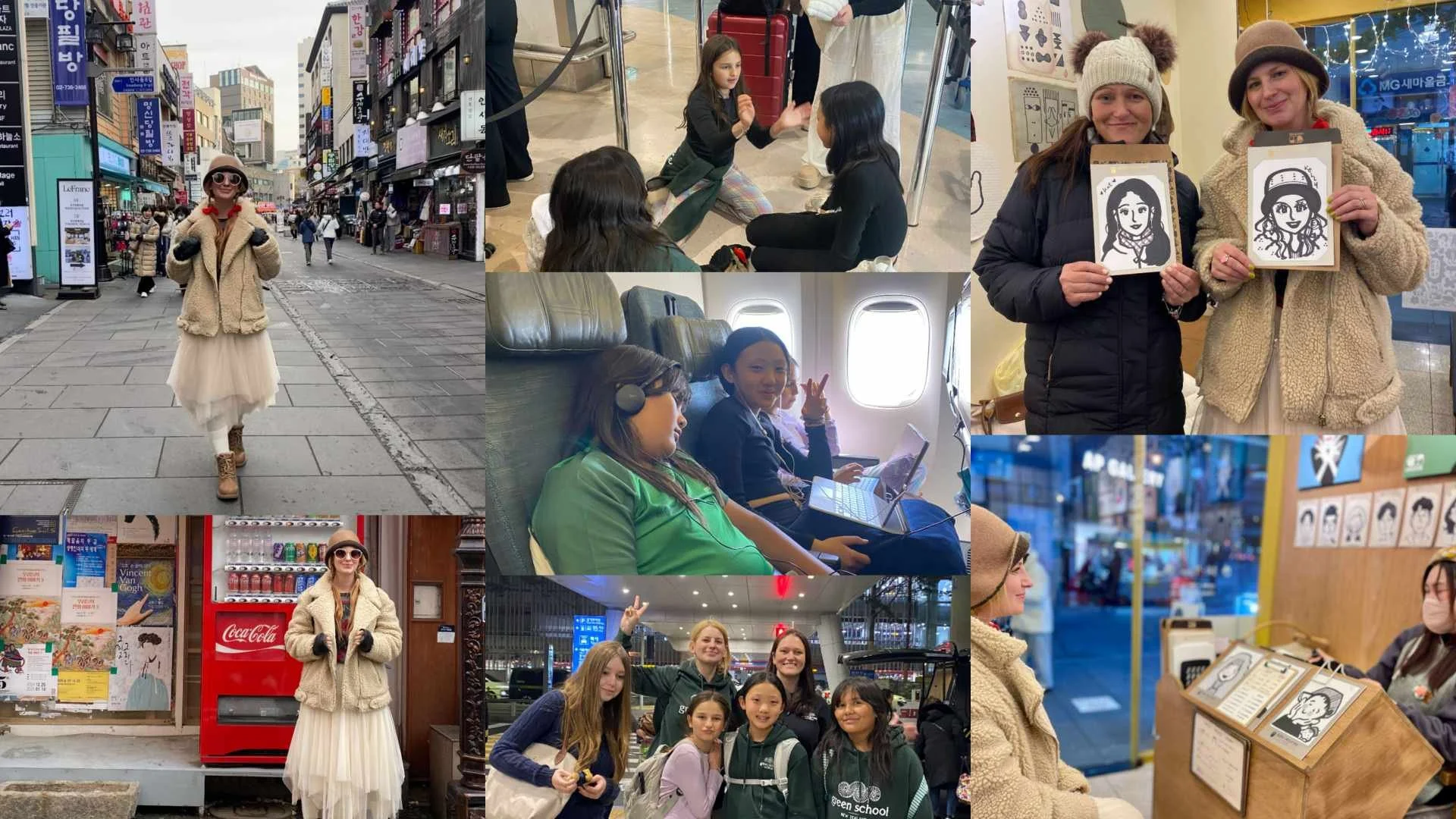 The adventure began with visits to iconic sites like Insadong Culture Street and Namsan Tower. Our learners enjoyed browsing antiques, vintage clothing, and sampling local delicacies. A favorite moment was at Dotori Caricature, where everyone got personalized caricature drawings—a highlight of the day. Gyeongbokgung Palace was another standout experience. Clad in traditional Korean hanboks, the group admired the palace’s architecture under the golden sun, pausing to reflect on the incredible opportunity this trip offered.