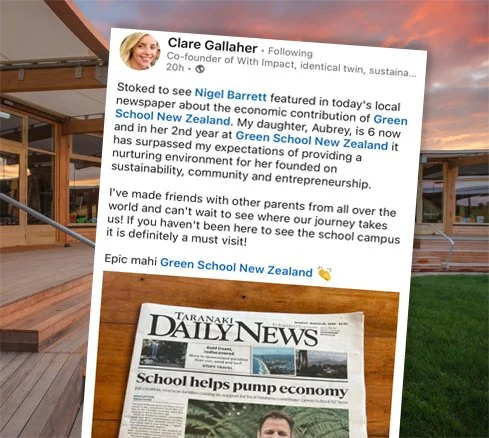 ✨ Thank you to Green School parent Clare, and Stacey from VentureTaranaki, for your kind words in a timely article in our local newspaper highlighting the economic contribution of Green School New Zealand.